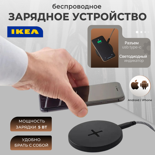 Беспроводное зарядное устройство IKEA LIVBOJ 404.470.51, для разных моделей, USB Type-C, черное
