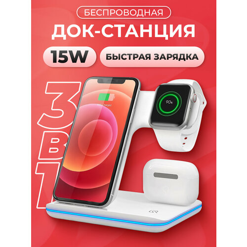 Беспроводная зарядка для iPhone, Samsung, Apple Watch, AirPods, зарядная станция 15W