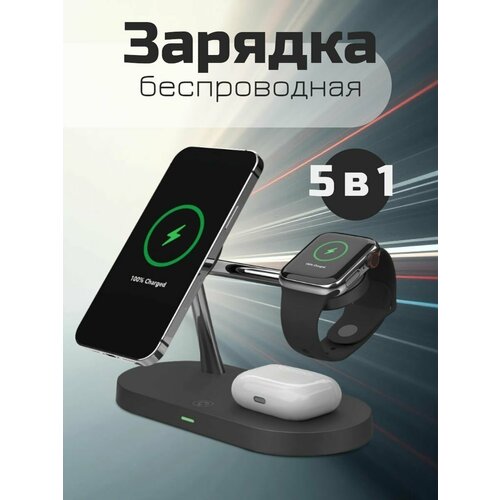 Магнитная беспроводная зарядка для iPhone MagSafe 5 в 1 15W, зарядная станция для Айфона, Apple Watch, AirPods