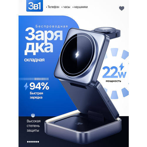 Беспроводная зарядная станция, магнитная (MagSafe) для Apple Iphone 15 Вт, 3 в 1 / Док-станция для Apple Watch/Airpods