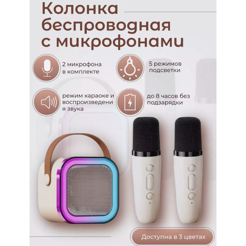 Детская караоке система с двумя беспроводными микрофонами и колонкой (бежевый)