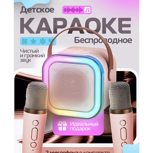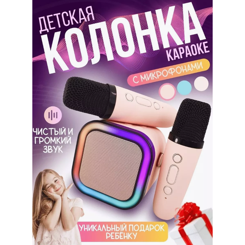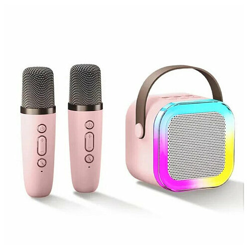 Колонка караоке с двумя микрофонами/ портативная колонка розовая Miralda_Shop