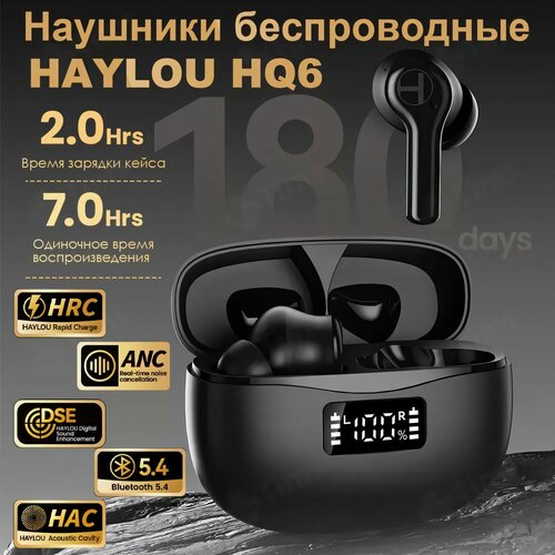 Беспроводные наушники Haylou HQ6 Black 151699, компактный дизайн, высокое качество звучания, комфортное ношение, GL