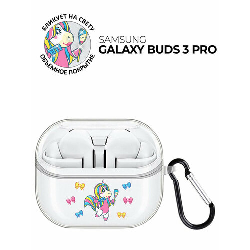 Чехол на Samsung Galaxy Buds 3 pro с принтом "Lady Unicorn" прозрачный