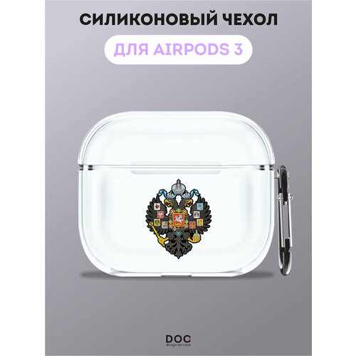 Силиконовый чехол DesignOnCase для беспроводных наушников AirPods 3, с карабином, глянцевый, Герб России
