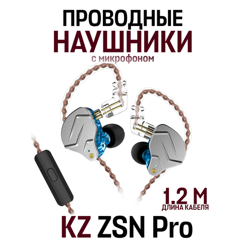 Наушники Knowledge Zenith ZSN Pro с микрофоном, mini jack 3.5 mm, серый, синий