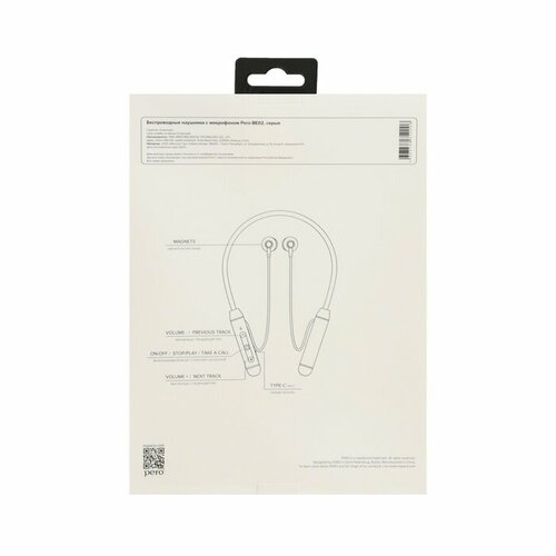 Наушники PERO BE02 SPORTLIFE, беспроводные, BT 5.1, микрофон, 150 мАч, до 14 часов, серые