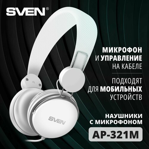 Наушники с микрофоном (гарнитура) SVEN AP-860MV, проводные, 2 м, с оголовьем, черные, SV-0410860