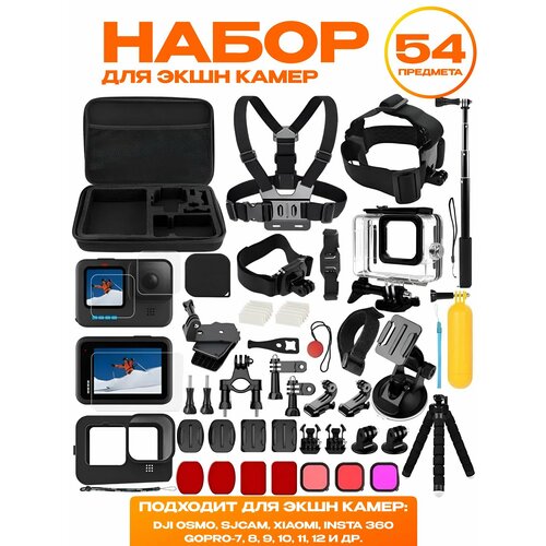 Набор аксессуаров 54 в 1 для GoPro 12/11/10/9 водонепроницаемый чехол в комплекте