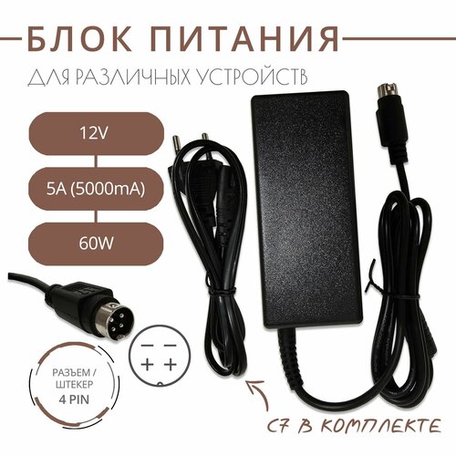 Блок питания 12V 5A для камер видеонаблюдения, видеорегистраторов и других устройств с разъемом 4pin