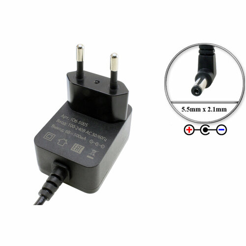 Адаптер (блок) питания 6V, 0.5A, 5.5mm x 2.1mm, отриц. полярность, угловой (PQLV19CE, PQLV200CE, ID6-500S), для беспроводных телефонов Panasonic.