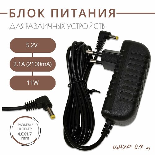Блок питания 5.2V 2.1A для смарт TV приставки Mi Box и других устройств с разъемом 4.0x1.7, длина 0.9 м