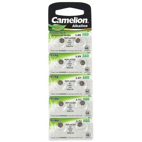 Camelion Батарейка алкалиновая Camelion Mercury Free, AG0 (LR521, 379)-10BL, 1.5В, блистер, 10 шт.
