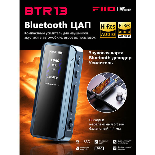 ЦАП-усилитель FIIO BTR13 (F3082B) Blue, Дисплей: 0.96 дюйма IPS, Чип Bluetooth: QCC5125