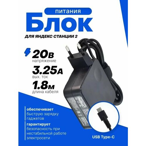 Блок питания 65W TYPE-C для умных колонок Яндекс Станция Дуо Макс с Алисой, второго поколения и Миди
