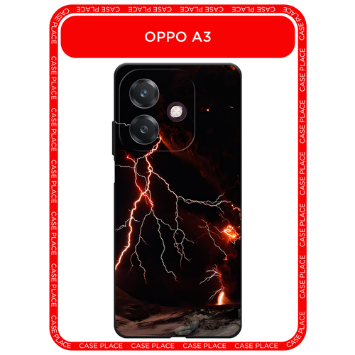 Черный матовый чехол на Oppo A3/A3x / Оппо А3/A3x с принтом Молния 4