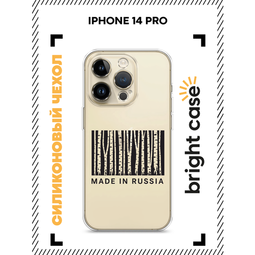 Чехол на Apple iPhone 14 Pro / Айфон 14 Про с принтом Черные березы Made in Russia, прозрачный