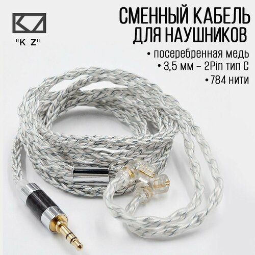 Кабель для наушников KZ, посеребренный 3,5 мм - 2Pin(C)