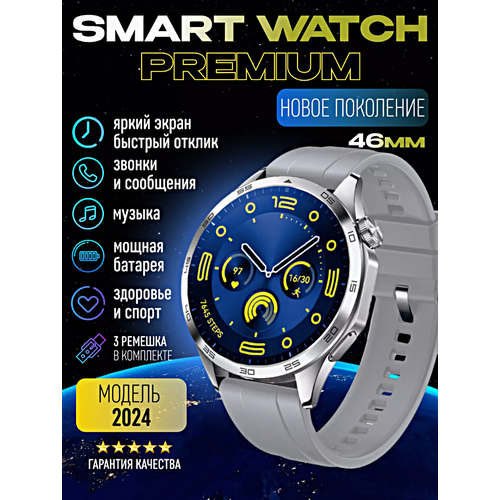 Умные смарт часы мужские и женские, Premium Smart Series 10 Pro Max, фитнес-часы с глянцевым корпусом серебристые