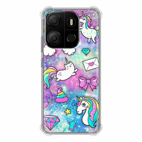 Дизайнерский силиконовый с усиленными углами чехол для Текно Поп 7 / Tecno Pop 7 Единороги