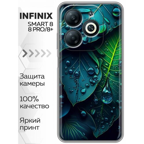 Чехол для Infinix Smart 8 4G, 8 Plus 4G, 8 Pro 4G с принтом Зеленые листья (Инфиникс Смарт 8, Смарт 8 Плюс, Смарт 8 Про)