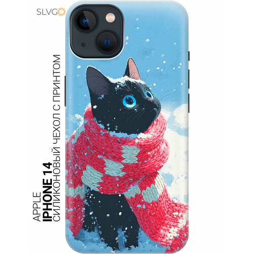 Силиконовый чехол на Apple iPhone 14 с принтом Зимний аниме кот, trn