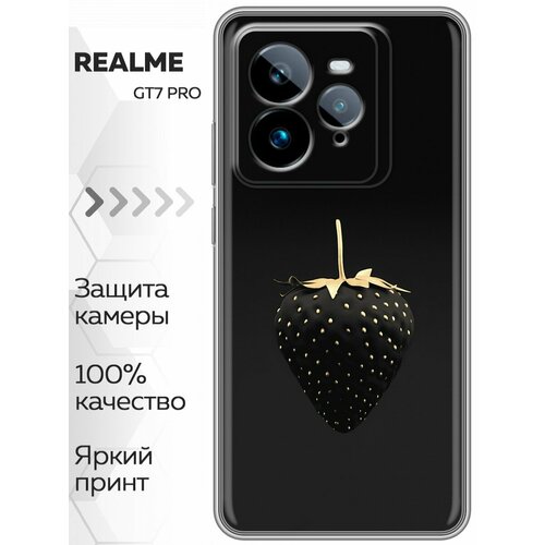 Чехол для Realme GT7 Pro с принтом Черная клубничка (Реалми ГТ7 про)