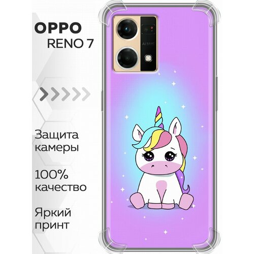 Чехол для OPPO Reno7 Розовый единорог (Оппо Рено 7)