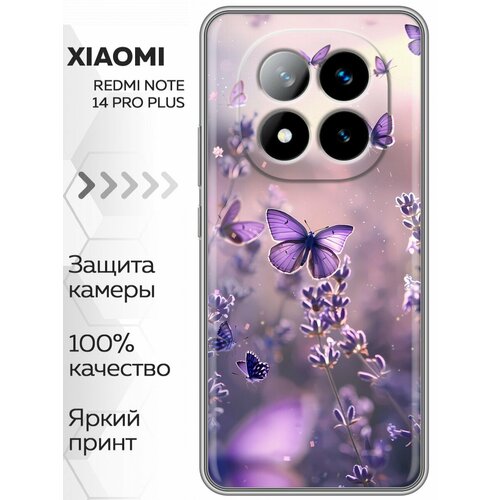 Чехол для Xiaomi Redmi Note 14 Pro Plus 5G с принтом бабочки и лаванда (Сяоми Редми Нот 14 Про Плюс 5G)
