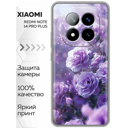 Чехол для Xiaomi Redmi Note 14 Pro Plus 5G с принтом Цветы сиреневые розы (Сяоми Редми Нот 14 Про Плюс 5G)