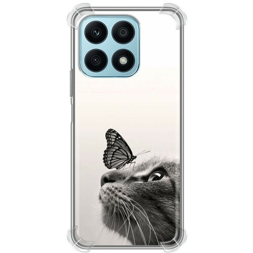 Дизайнерский силиконовый с усиленными углами чехол для Хонор Х8а / Huawei Honor X8a Кот и бабочка