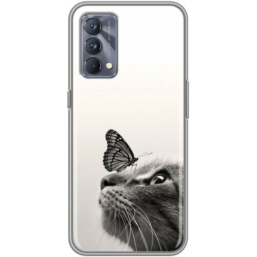 Дизайнерский силиконовый чехол для Реалме ГТ Мастер Эдишн / Realme GT Master Edition Кот и бабочка