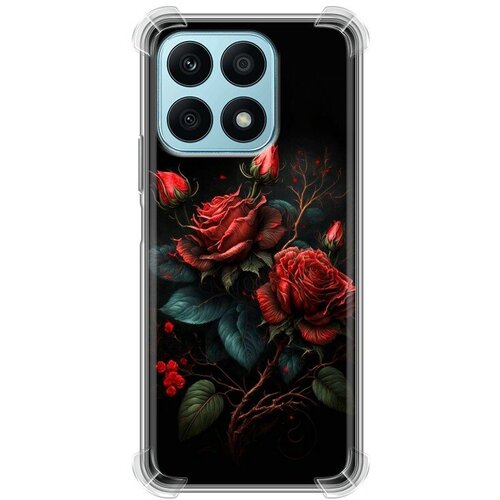 Дизайнерский силиконовый с усиленными углами чехол для Хонор Х8а / Huawei Honor X8a Розы красные