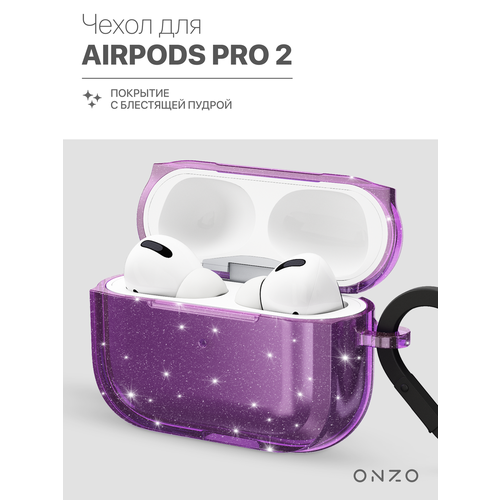 Защитный чехол для Apple Airpods Pro 2 / Аирподс Про 2 второго поколения, кейс для наушников, сиреневый с блестками