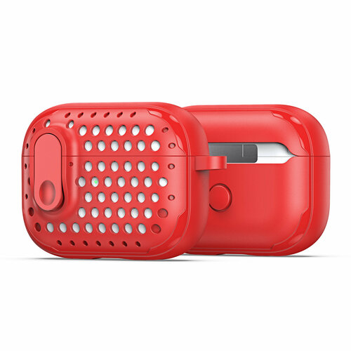 Усиленный чехол красного цвета от Dux Ducis для наушников Airpods Pro 2, серия PECM Series Case, в комплекте с карабином