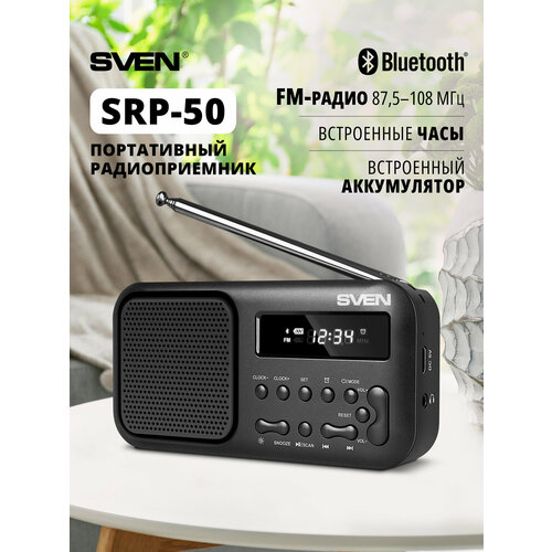 SVEN SRP-50 Портативный радиоприёмник c LED-дисплеем / Радио с Bluetooth (500 мАч), 3 Вт