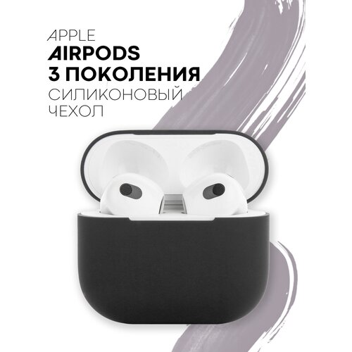 Силиконовый чехол для беспроводных наушников Apple AirPods 3 (Эпл Аирподс 3-го поколения) матовое покрытие, полное соответствие разъёмам, цвет черный