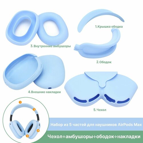 Набор полной защиты для AirPods Max, силиконовый однотонный набор защиты для наушников, светло-синий