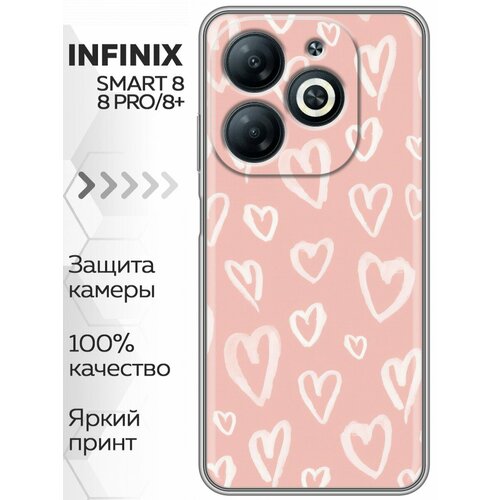 Чехол для Infinix Smart 8, 8 Plus, 8 Pro Сердечки розовые (Инфиникс Смарт 8, 8 плюс, 8 Про)