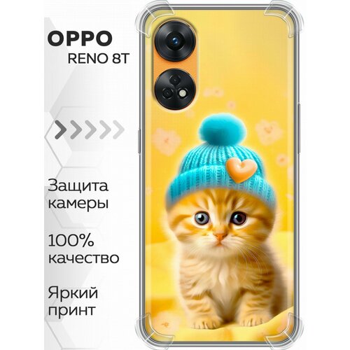 Дизайнерский силиконовый с усиленными углами чехол для Оппо Рено8 Т / OPPO Reno8 T Котенок в шапке принт