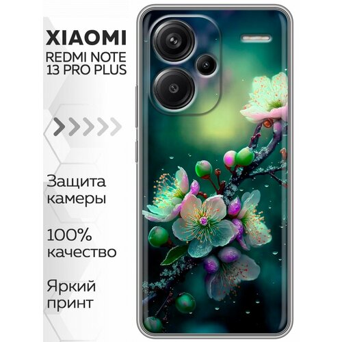 Чехол для Xiaomi Redmi Note 13 Pro Plus 5G с принтом Женский принт цветы (Сяоми Редми Нот 13 Про Плюс 5G)