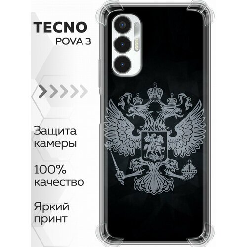 Чехол для Tecno Pova 3 с принтом Герб России серый (Техно Пова 3)