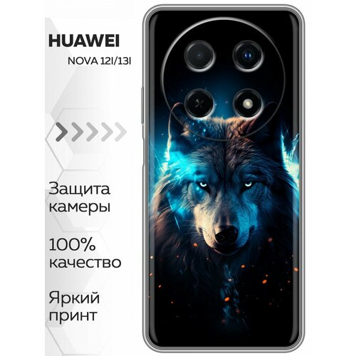 Чехол для Huawei Nova 12i, Nova 13i с принтом Волк ночной (Хуавей Нова 12и 12ай, Нова 13и 13ай)