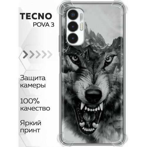 Чехол для Tecno Pova 3 с принтом Волк (Техно Пова 3)