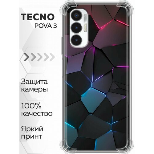 Чехол для Tecno Pova 3 с принтом геометрия неона (Техно Пова 3)