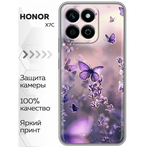 Чехол для Honor X7C 4G с принтом бабочки и лаванда (Хонор Х7С 4G)