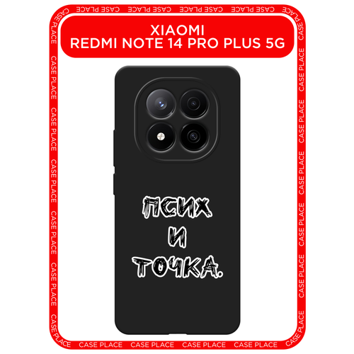 Черный матовый чехол на Xiaomi Redmi Note 14 Pro+ 5G / Сяоми Редми Нот 14 Про+ 5G с принтом Псих и точка черный
