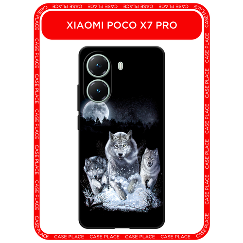 Черный матовый чехол на Poco X7 Pro / Поко X7 Про с принтом Стая волков под луной