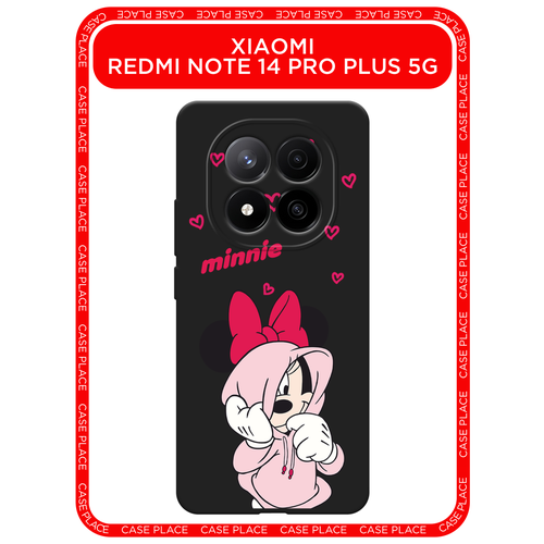 Черный матовый чехол на Xiaomi Redmi Note 14 Pro+ 5G / Сяоми Редми Нот 14 Про+ 5G с принтом Минни в худи
