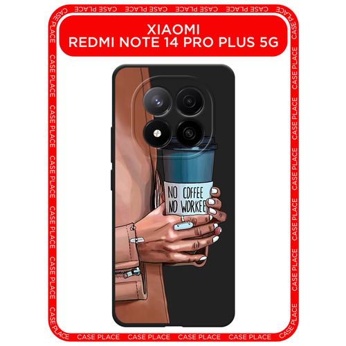 Черный матовый чехол на Xiaomi Redmi Note 14 Pro+ 5G / Сяоми Редми Нот 14 Про+ 5G с принтом No coffee